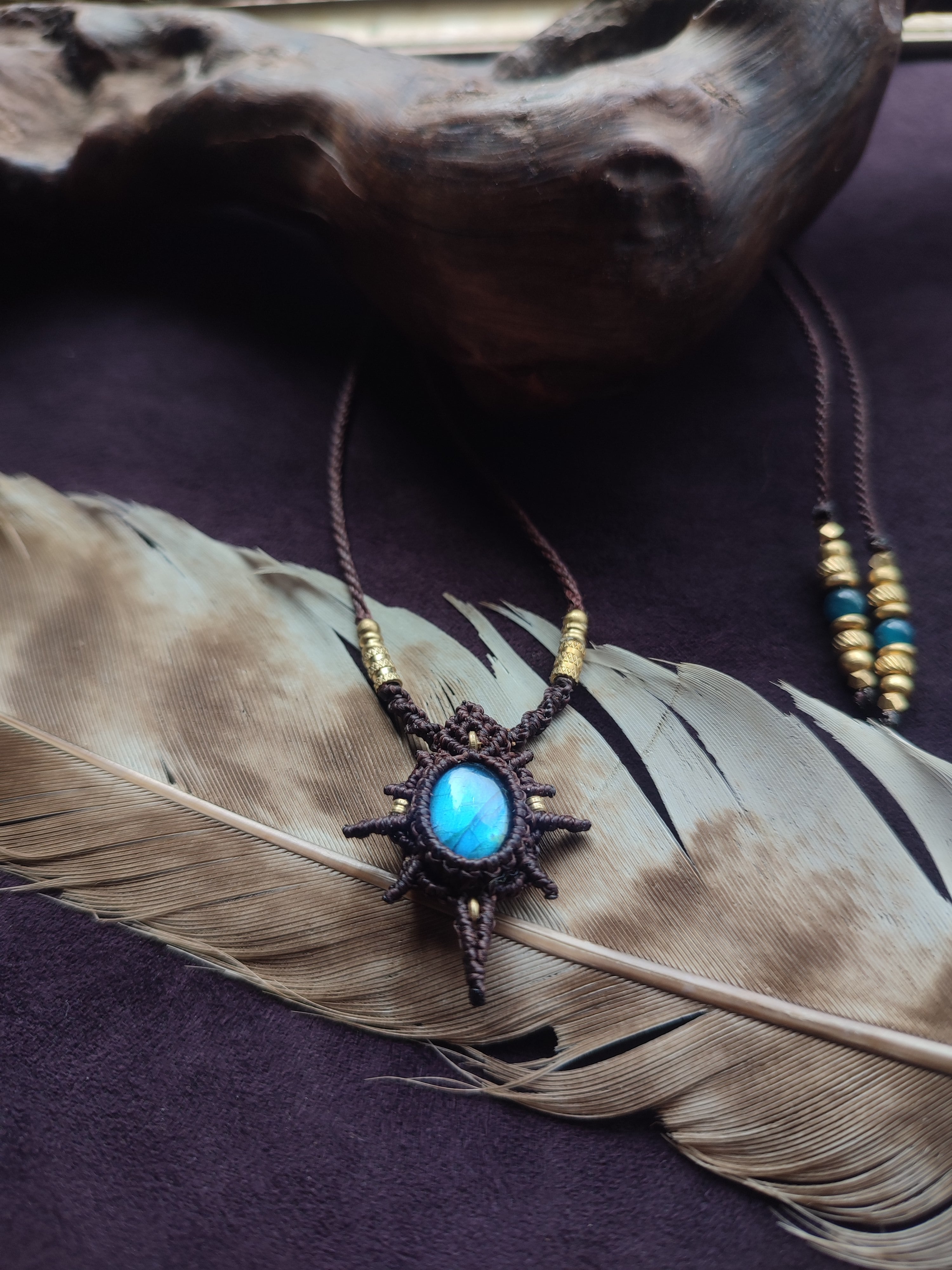 そんな光を持つラブラドライトに敬意をこめて編み込ませていただきました