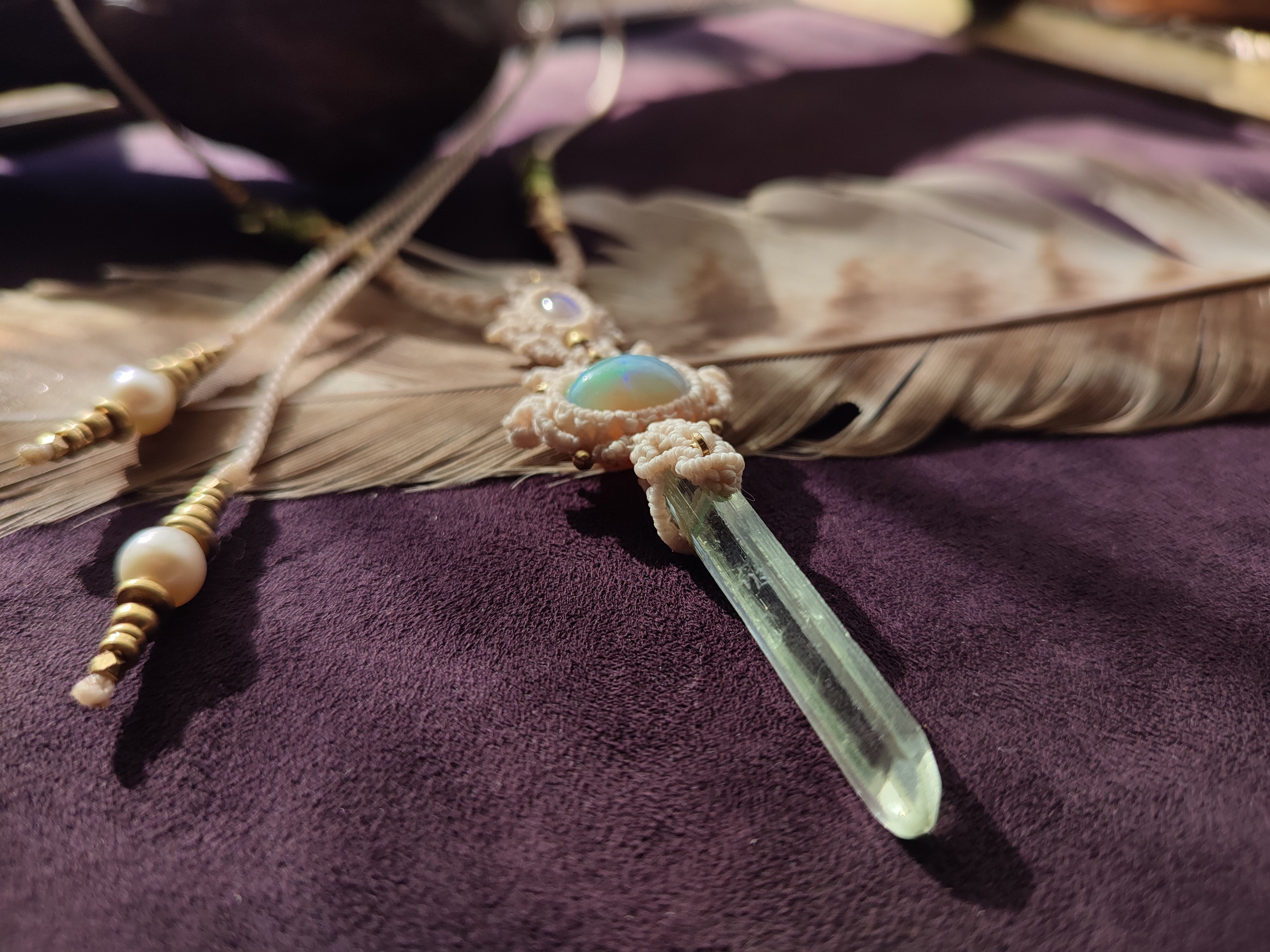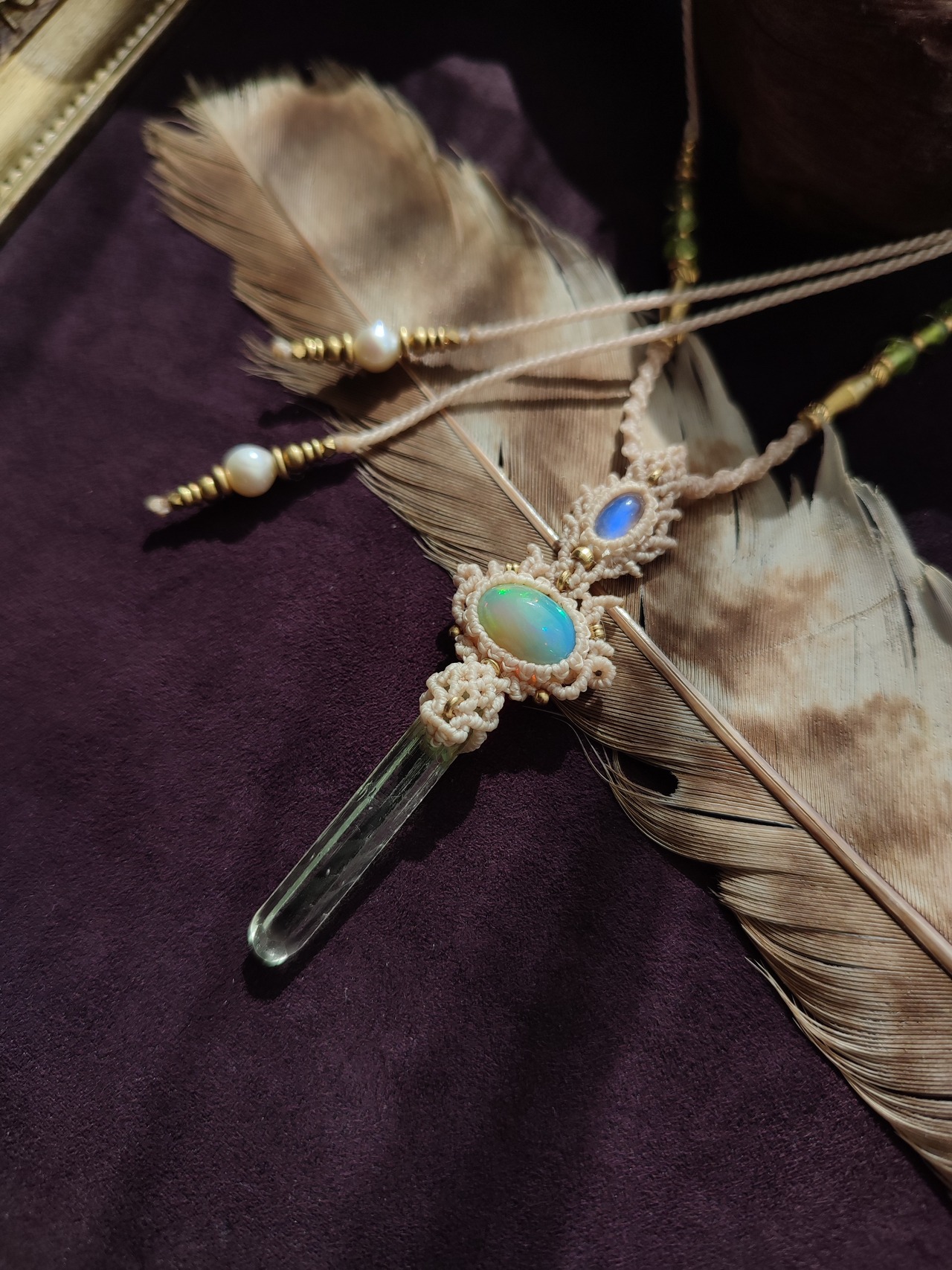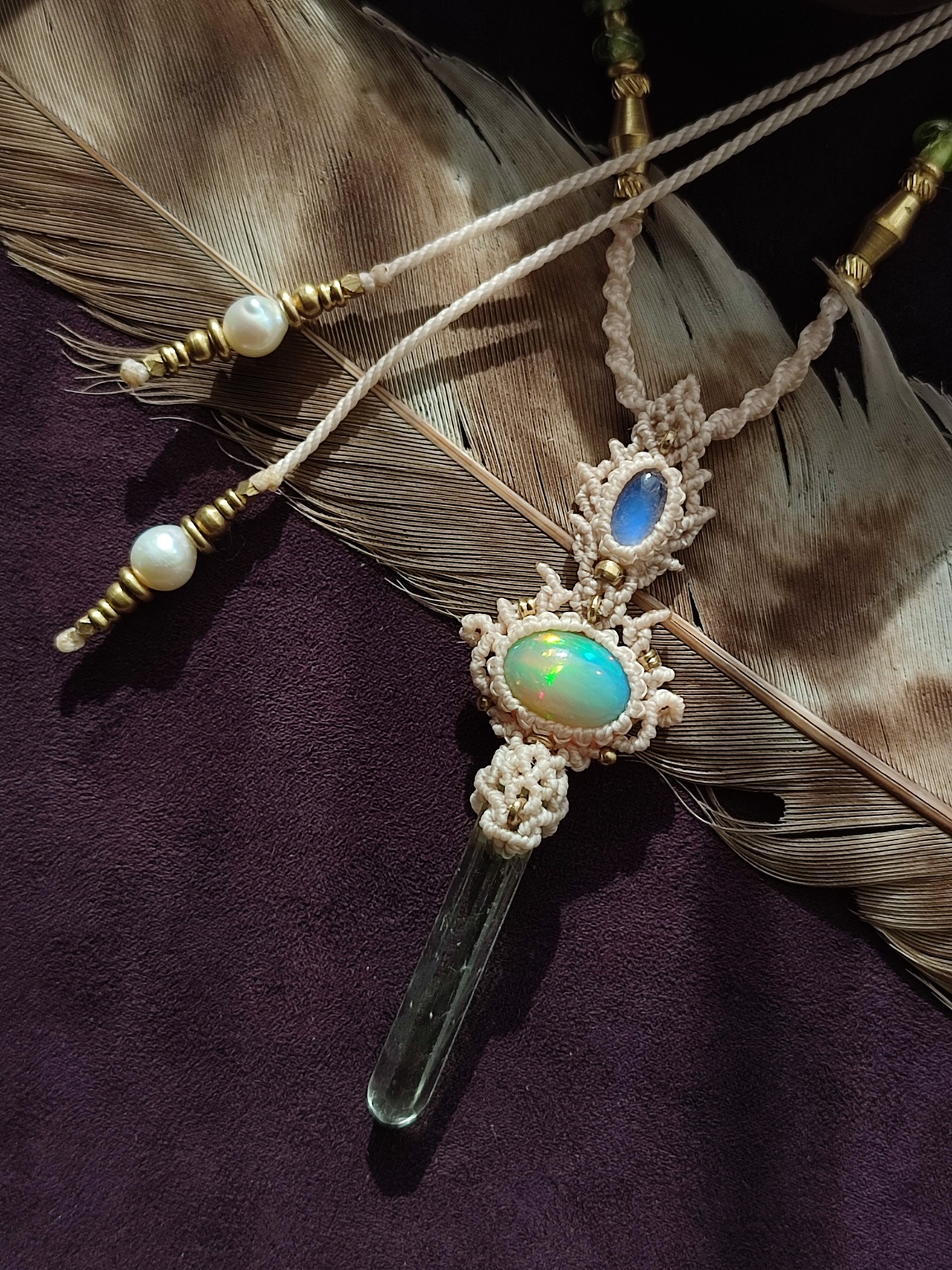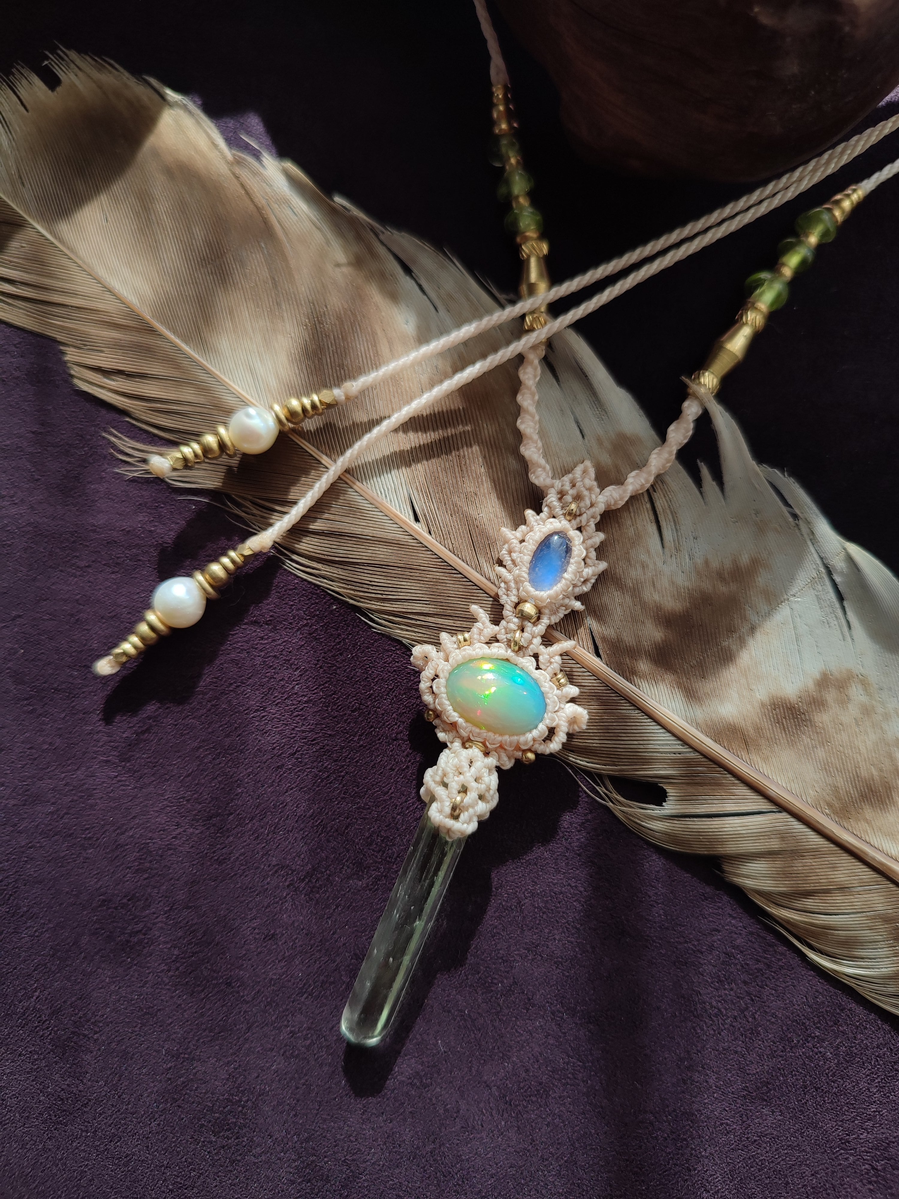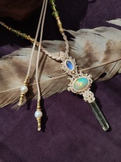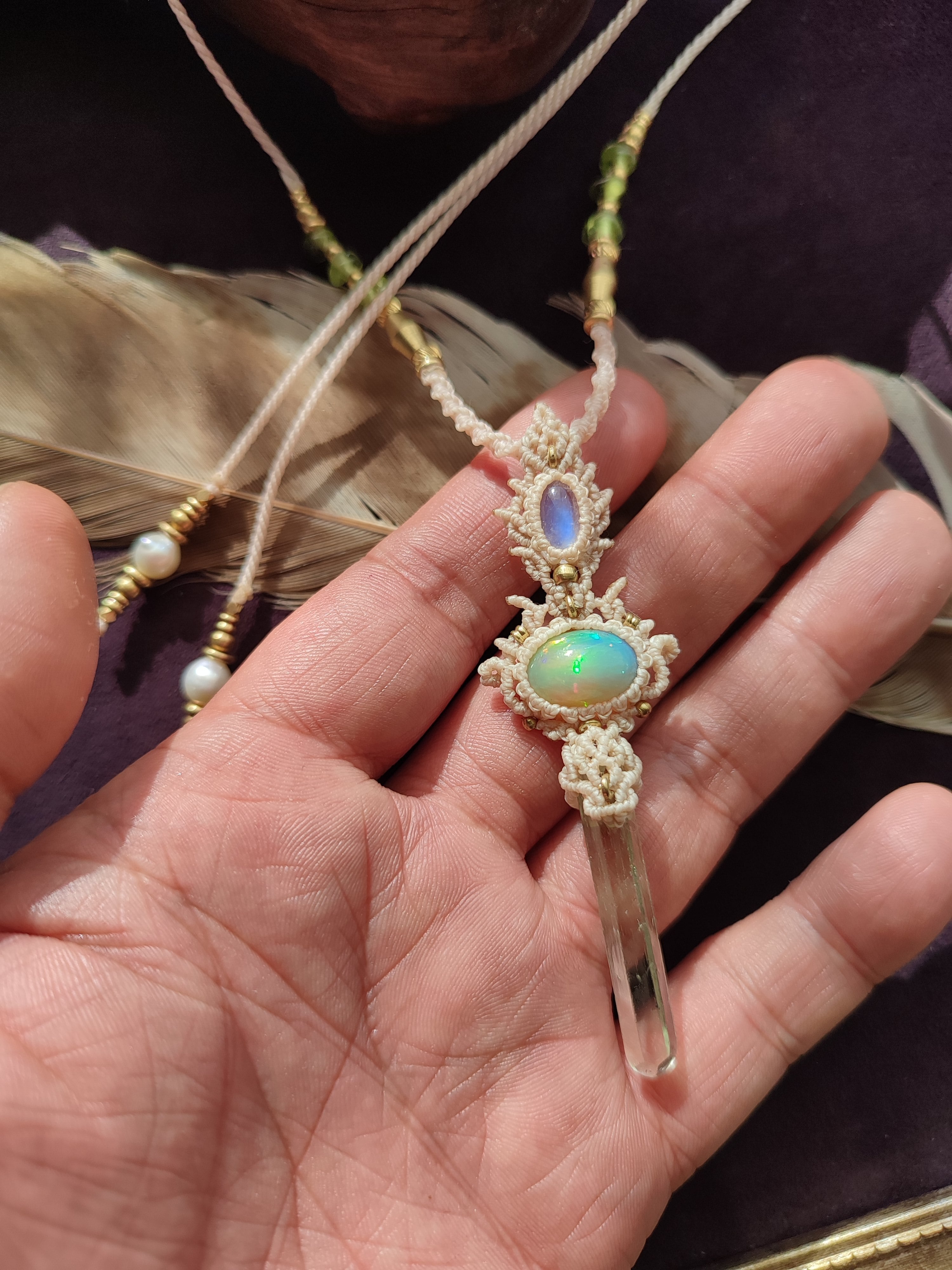 エチオピアンオパールとロイヤルレインボームーンストーン、ヒマラヤクリスタルを使った三種のネックレス 白昼夢のご紹介です