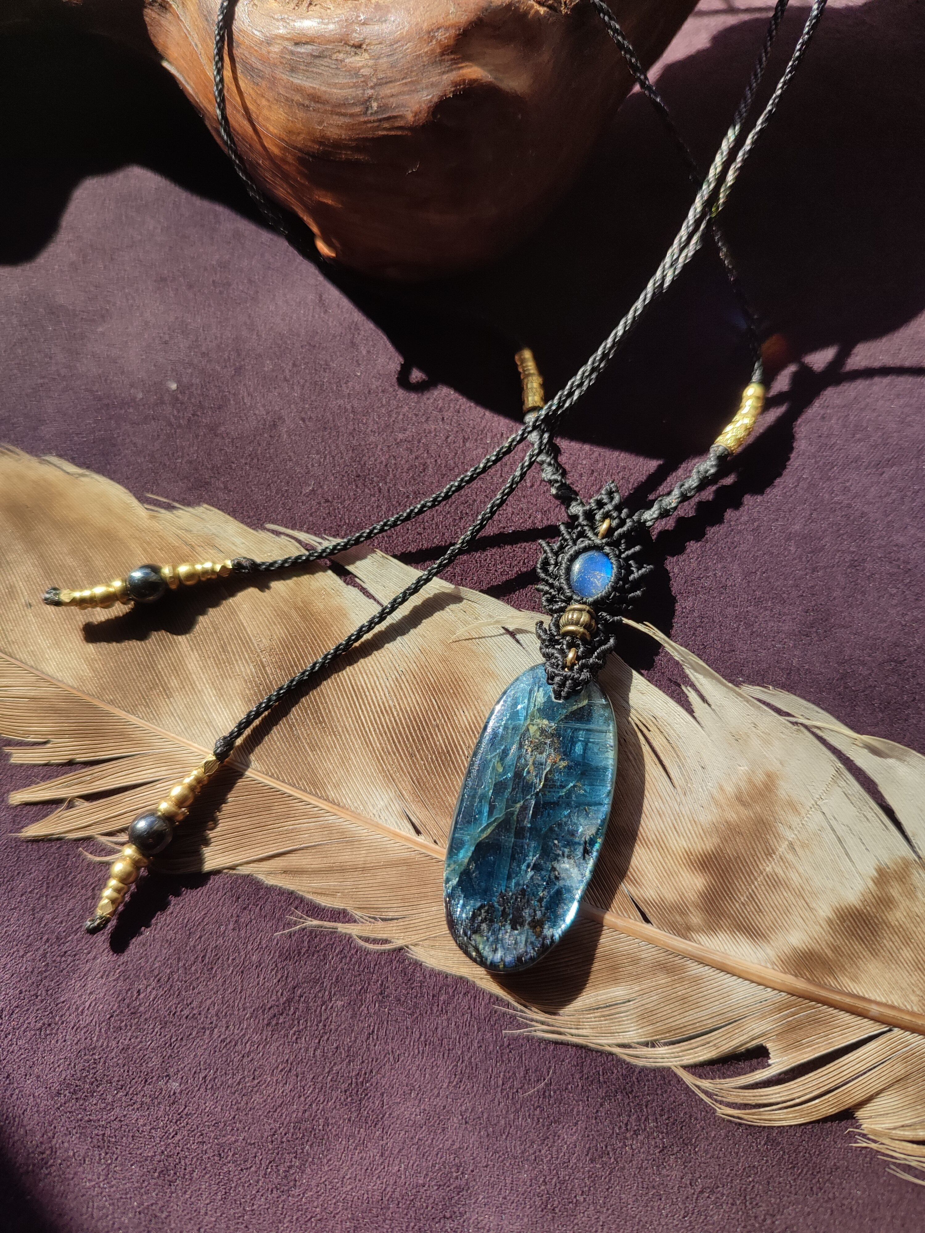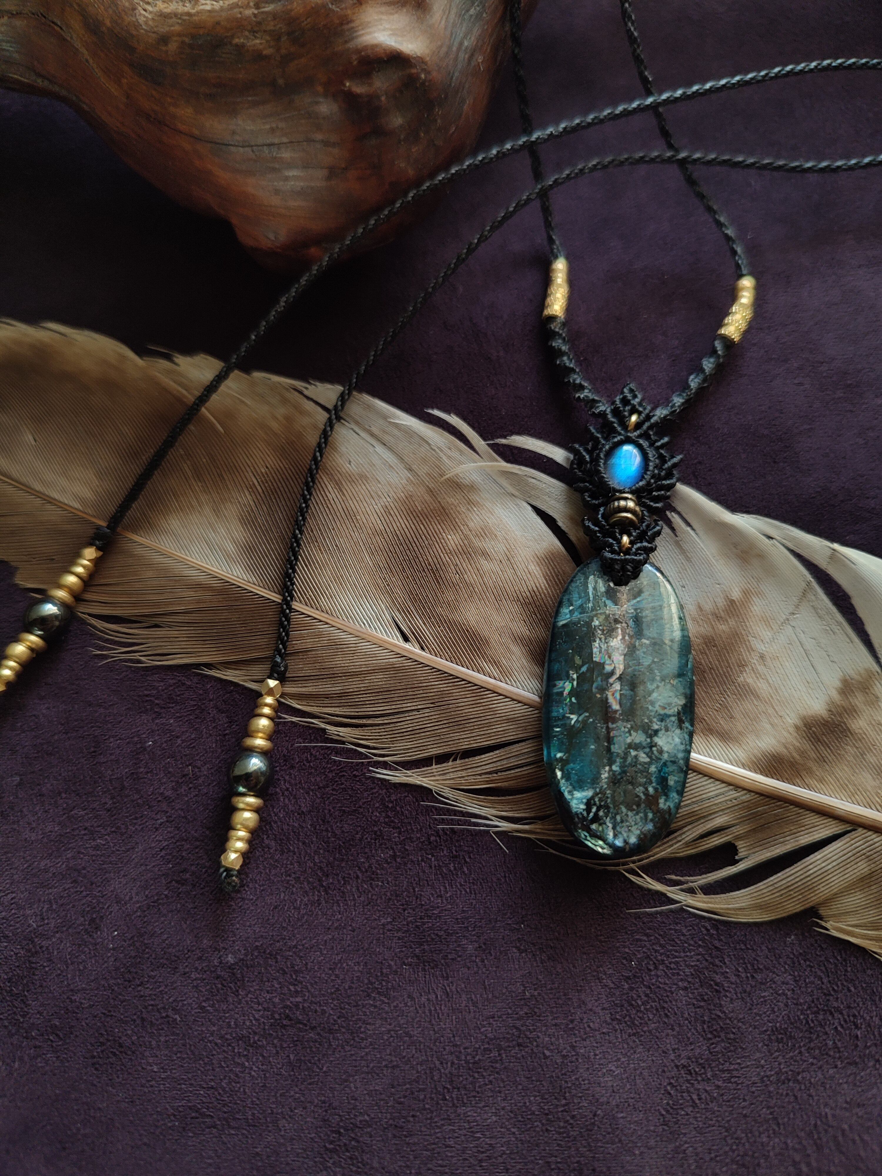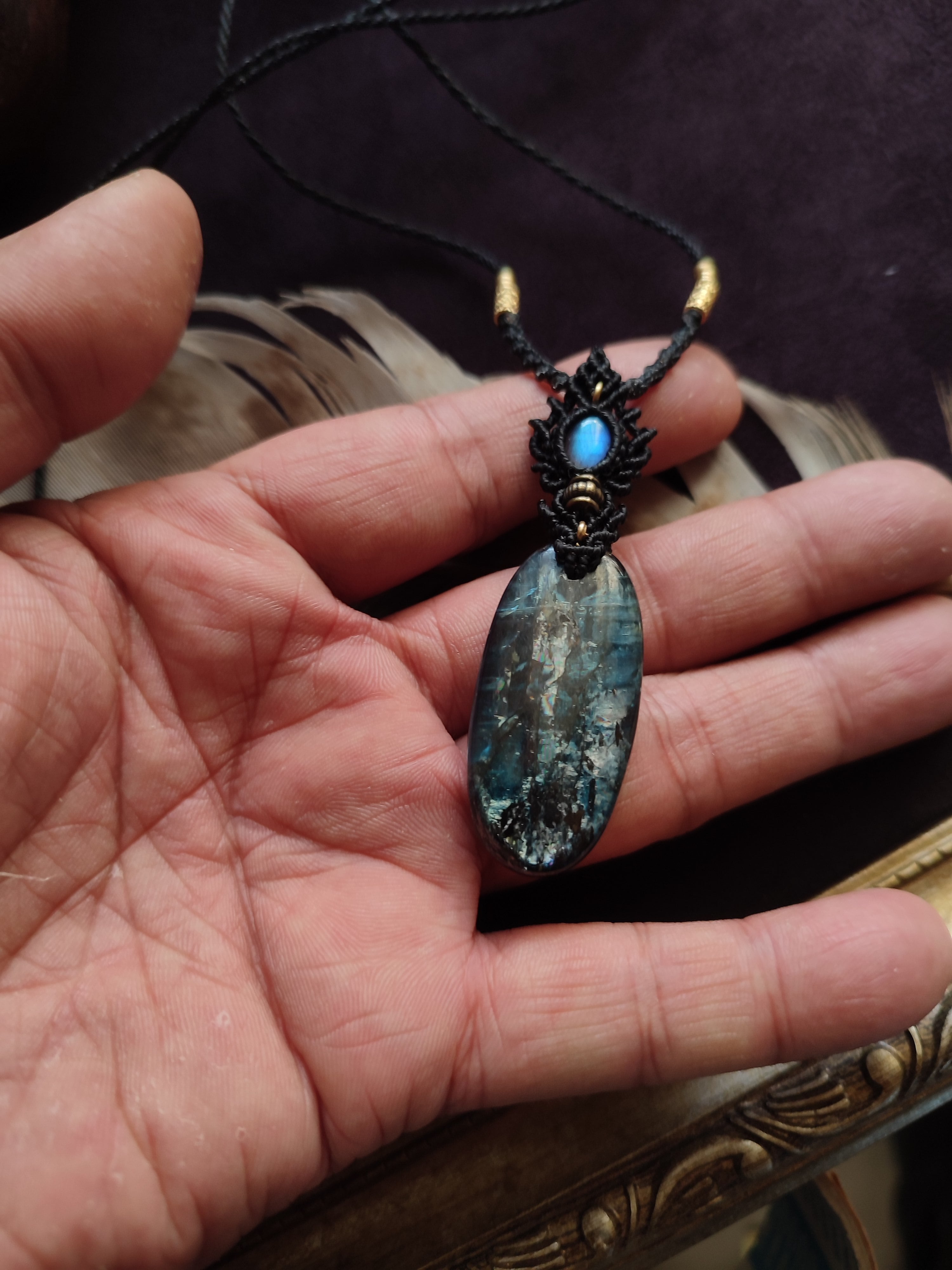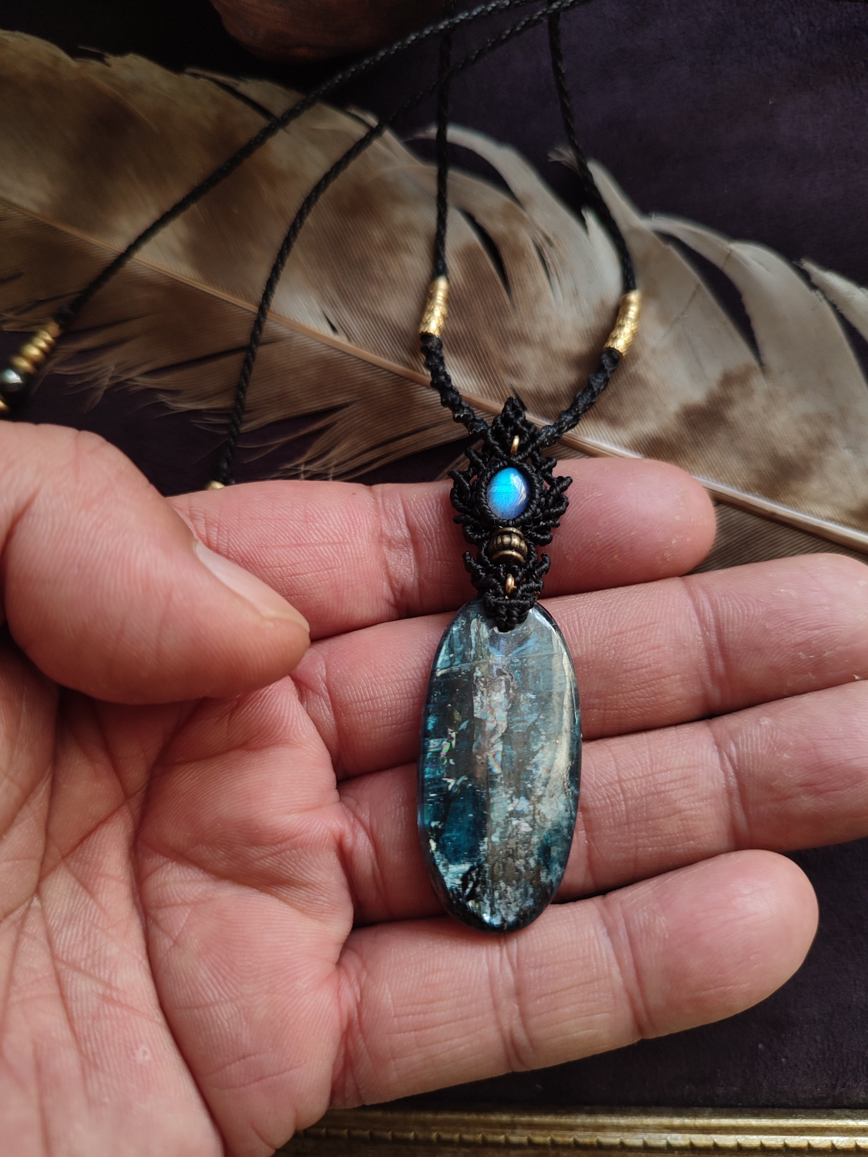 ラブラドライトとモスカイヤナイトのコンビネーションペンダント